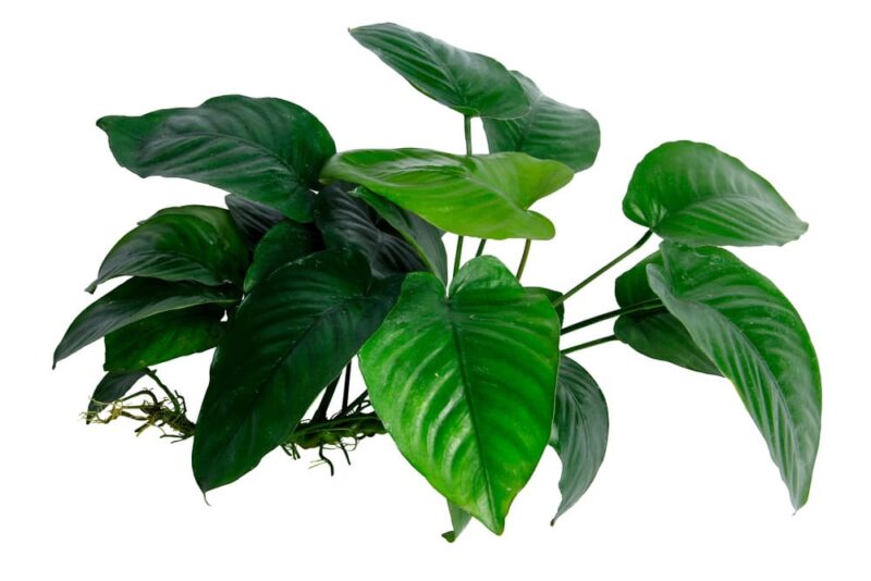 Do not bury the rhizome in the substrate. Attach the plant to hardscape using thread or glue. The roots will naturally anchor over time. Avoid placing in direct light to prevent algae growth on leaves.